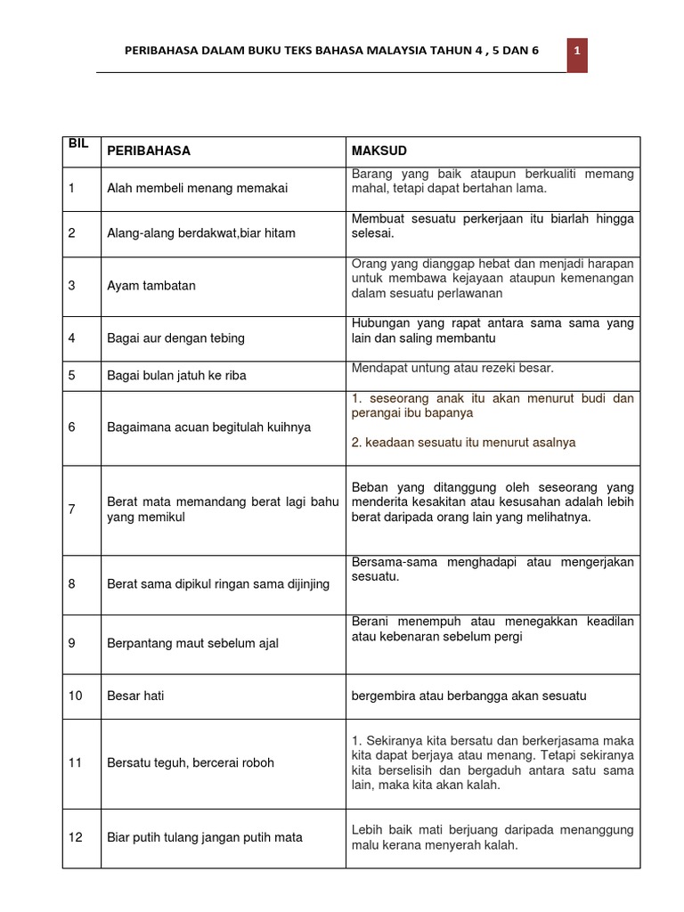 Layari untuk dapat maksud latihan dan nota peribahasa Melayu.